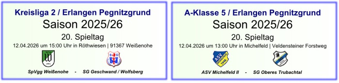 | 20 | 12.04.2026 | 15:00 | SpVgg Weißenohe | - | SG Geschwand / Wolfsberg |