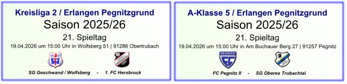 | 21 | 19.04.2026 | 15:00 | FC Pegnitz II | - | SG Oberes Trubachtal |